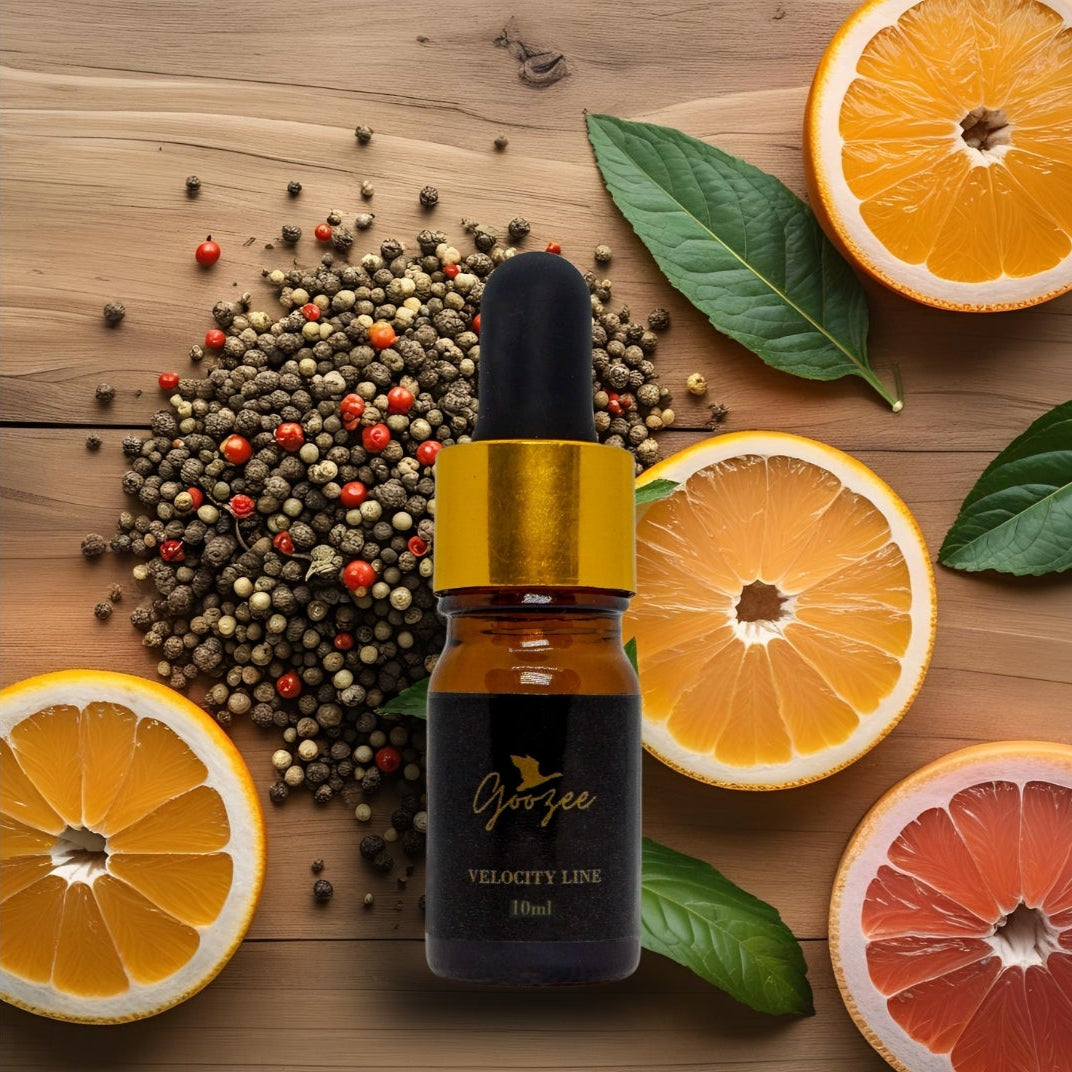 Velocity Line egy karakteres, fás-fűszeres illat, amely az ember és a természet közötti mély kapcsolatot idézi meg. Friss nyitánya lédús narancs és grapefruit jegyekkel indít, melyeket a szívben megjelenő fekete bors, rózsafa és geránium tesz erőteljessé és kifinomulttá. Az illat alapját a meleg cédrusfa, földes vetiver és balzsamos benzoin alkotja, hosszú, tartós lecsengést biztosítva.